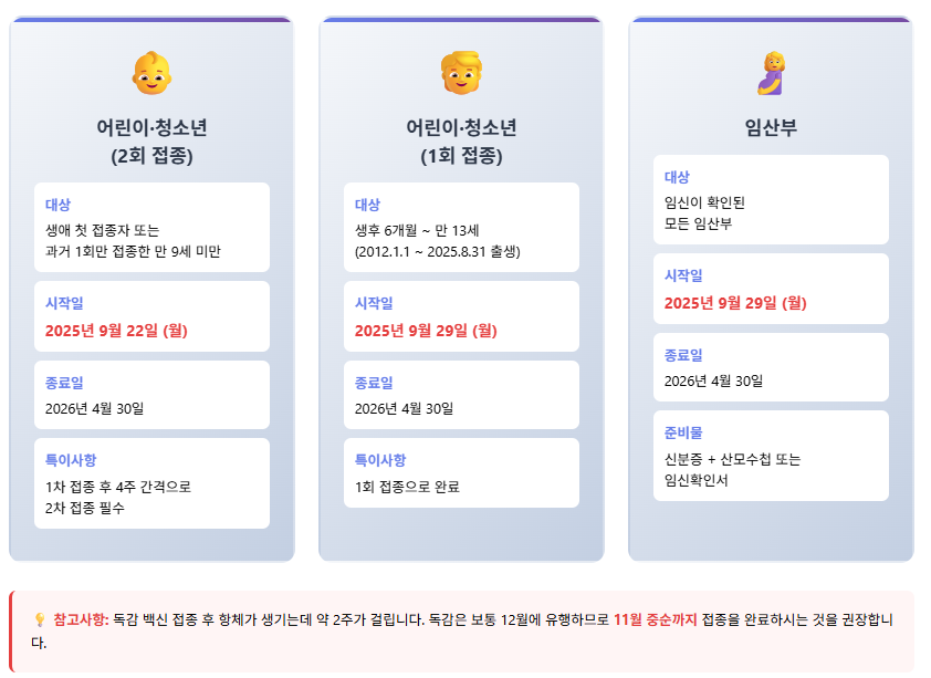 - 정확한 접종 시작일: 2025년 9월 29일 (월)